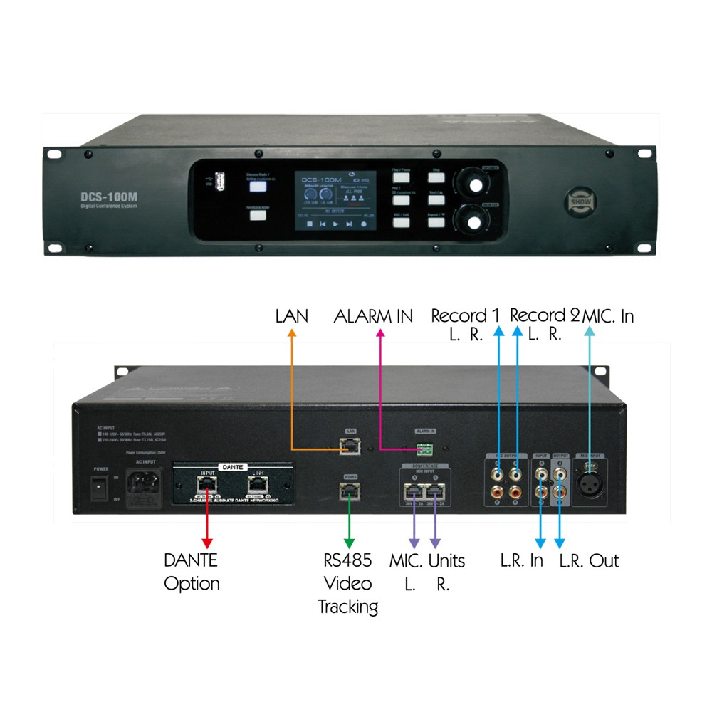 El DCS-100M de la marca SHOW (SEIKAKU) es una sofisticada unidad central de control para sistemas de conferencia digitales que integra un procesador de señales digitales (DSP) de última generación para gestionar con alta fidelidad el audio en entornos como parlamentos, salas de juntas y centros de negocios.